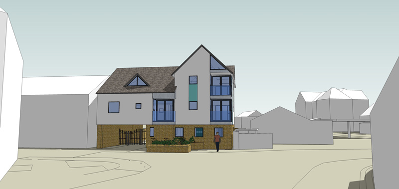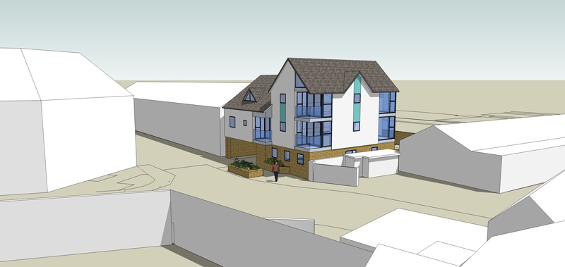 Redevelopment of a brownfield site through the demolition of the existing dwelling and business premises and providing 6 new apartments with parking and amenity space.