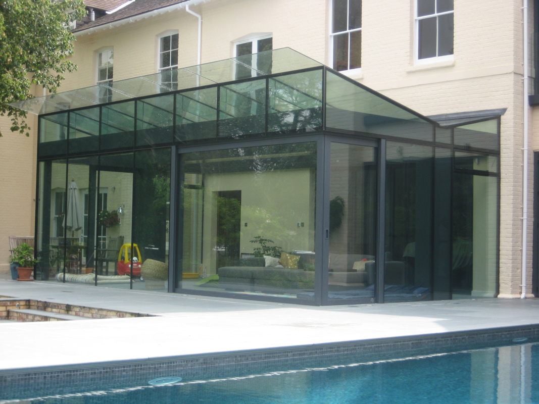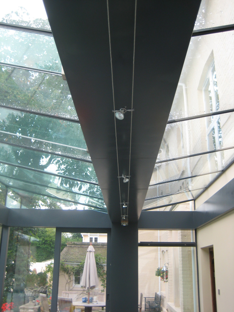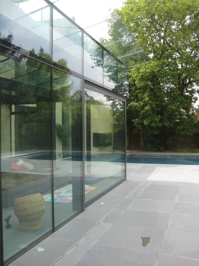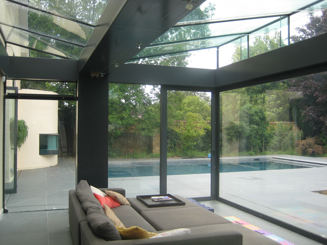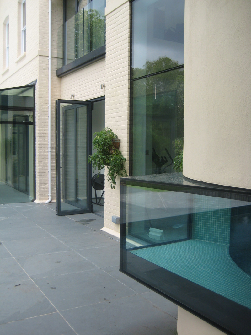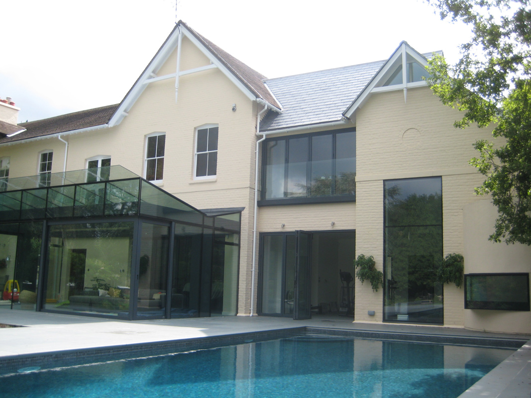 A substantial house in a Conservation Area within London with complete internal adaptation and reorganising of internal spaces took place together with large two storey extensions together with a "glass box" conservatory.